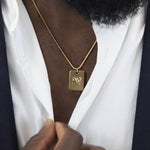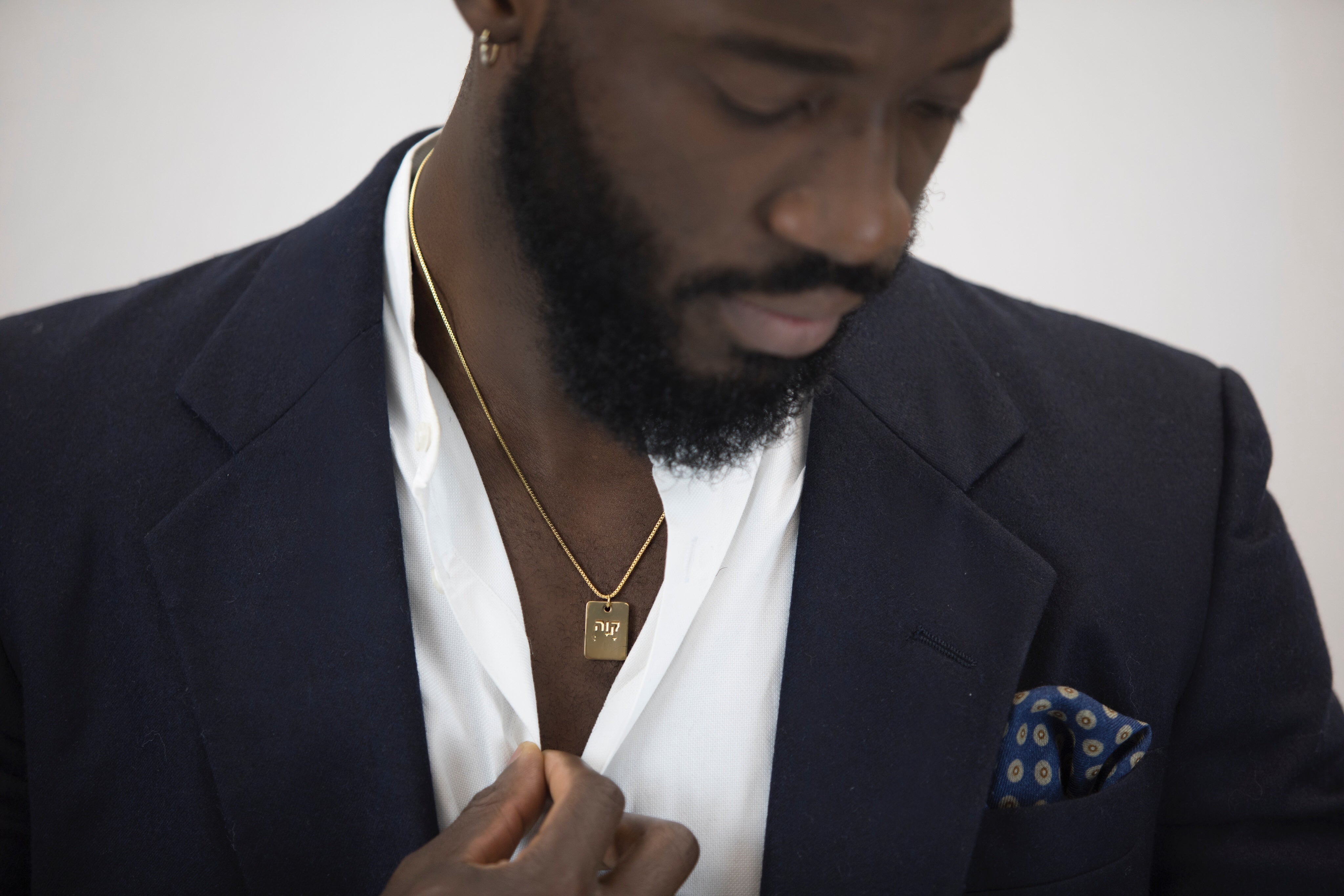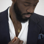 Model is 5'10" and has an athletic build. He is wearing the piece in 18". See size chart for more info.